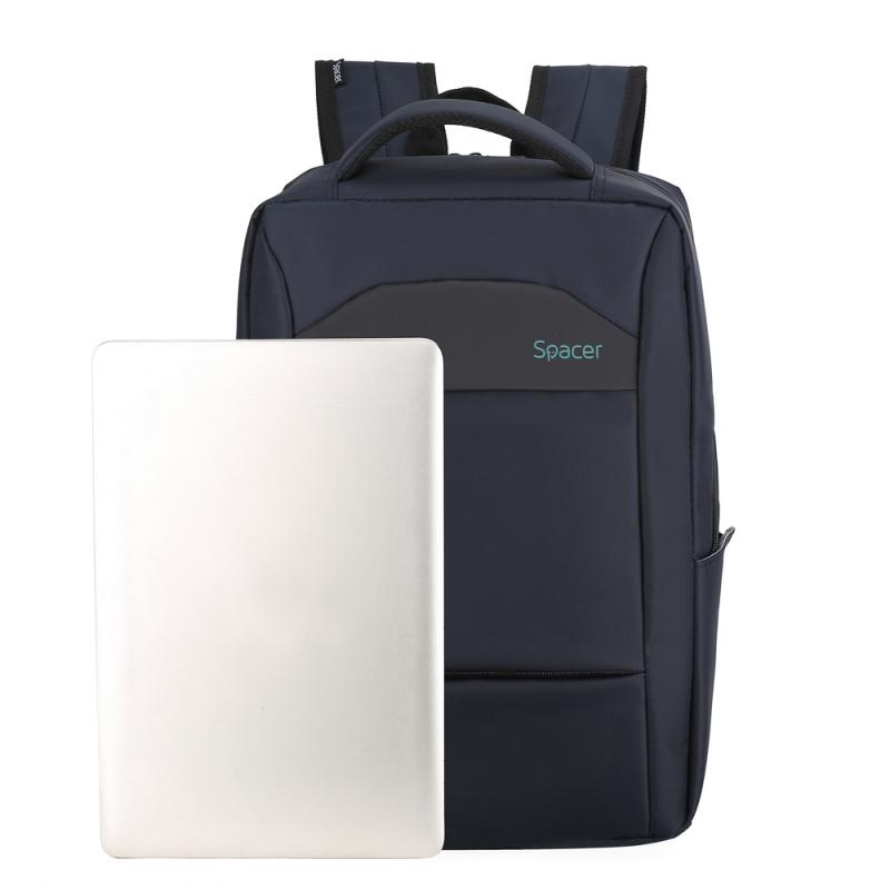 Rucsac Spacer pentru notebook de max. 15.6″, 1 compartiment, buzunar frontal x 2, buzunar lateral x 2, waterproof, poliester, albastru