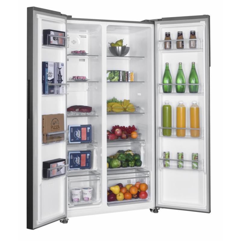 Side by side Heinner HSBS-HM532NFXE++, Full No Frost, Compresor Dual Inverter, clasa energetica E, display touch, control electronic, capacitate totala: 532L, capacitate frigider: 347L, capacitate congelator: 185L, functie SMART, functie ECO, Super racire