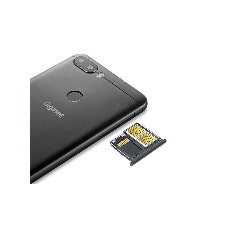 Smartphone Gigaset GS370+ 4G/LTE, Dual SIM (2xNano-SIM, 4G/LTE dar nu concomitent, stand-by dual), Chipset/Procesor/GPU MediaTek 6750T Octa-Core (1.50GHz), ecran IPS 5.7" HD+(1440x720, contrast 800:1, luminozitate 420cd/mp, densitate pixeli 282ppi) cu protectie sticla 2.5D, RAM 4GB, stocare 64GB eMCP (suport microSD 128GB in slot dedicat), 3 camere (2 pe spate si una frontala): camera principala 13Mp (f/2.0, lentila cu 5 straturi pentru imagini mai clare, mod panorama/infrumusetare/ bokeh/ PiP - activare simultana a ambelor camere, video 1080p cu slow-motion- 1:2 sau 1:4) + camera 8Mp (cu unghi larg de 120 de grade) si camera secundara 8Mp, WIFI 802.11 a/b/g/n (2.4G and 5G)/ Bluetooth 4.1/ microUSB2.0, porturi: 1x3.5mm Audio Jack/ 1xMicroUSB2.0 (USB on the go - OTG cu suport pentru dispozitive externe: memorie, mouse, tastatura etc)/ 1xmicroSD dedicat, Navigatie GPS & A-GPS & GLONASS, senzori: giroscopic & E-busola & de proximitate & de lumina ambientala & gravitational & cititior de amprenta digitala pe spate, baterie Li-Polymer 3000mAh (nedetasabila, cu incarcare rapida - 2.5ore si functie de baterie externa), adaptor 5V 2A, difuzor & microfon, dimensiuni 152 x 72 x 8.2mm (H x L x G), greutate 145g, culoare neagra si design metalic, casti & bumper de protectie & adaptor & cablu microUSB incluse, Android 7.00(Nougat)