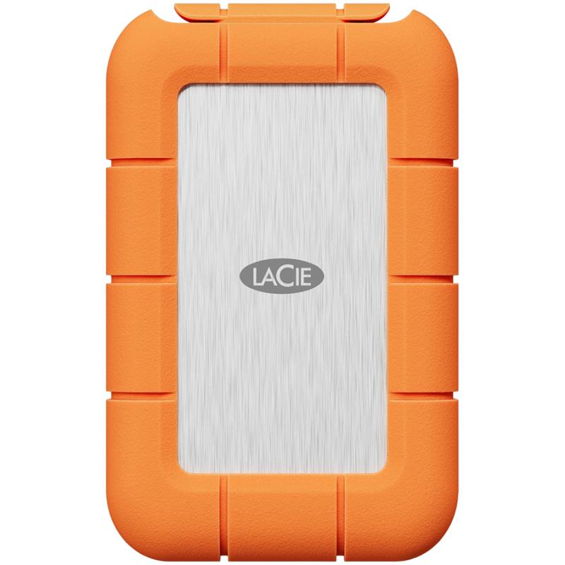 SSD Extern LaCie Rugged SSD4 2TB, THUNDERBOLT 5/4 compatible (40GB/s) + USB-C (40GB/s) cable included, IP54, 3-meter drop and 1-ton car crush resistance, Rescue Data Recovery Services 3 ani, Silver with Orange silicone cap