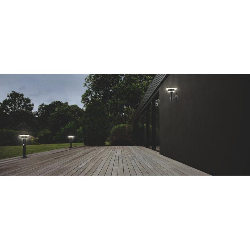 Stalp LED solar pentru exterior cu senzor de lumina si miscare Ledvance Endura Style Solar Post Sensor Double Circle, 6W, 3.2 V, 400 lm, lumina calda (3000K), IP44/IK03, 400x178mm, otel, PIR °90, raza detectie 6m, Negru