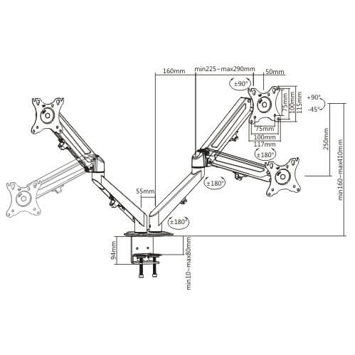 Construcție din oțel solid combinată cu aluminiu elegant turnat pentru o durabilitate și un mecanism integrat de arcuri de gaz care asigură mișcări netede la cele mai accesibile prețuri. Sloturile VESA în formă de pară fac ca instalarea și montarea monitorului să devină instantanee!Inclinarea flexibila, functiile de rotire si de pivotare asigura unghiuri confortabile ale monitorului. Liniile netede ale brațelor superioare și inferioare oferă un aspect elegant și plăcut oricărui mediu de birou. Funcțional elegant, dar su cu un pret accesibil. Cu seria MNT25 instalată, veți reduce stresul ochilor în timp ce vă optimizați spațiul de lucru.