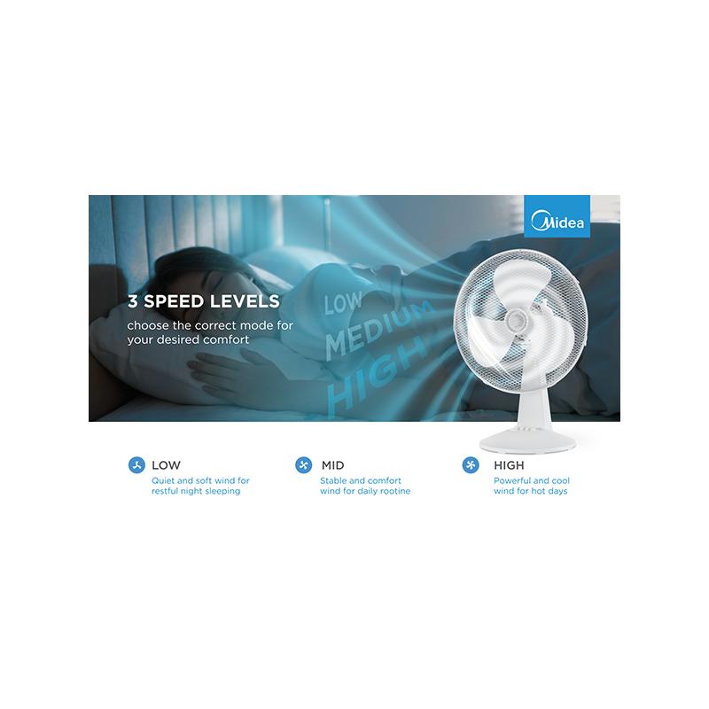 Table fan, 40W, 40cm, 3 speeds, mechanical, noise level: 50-60 dB, Oscillation 80°, Tilting +24° -12°
