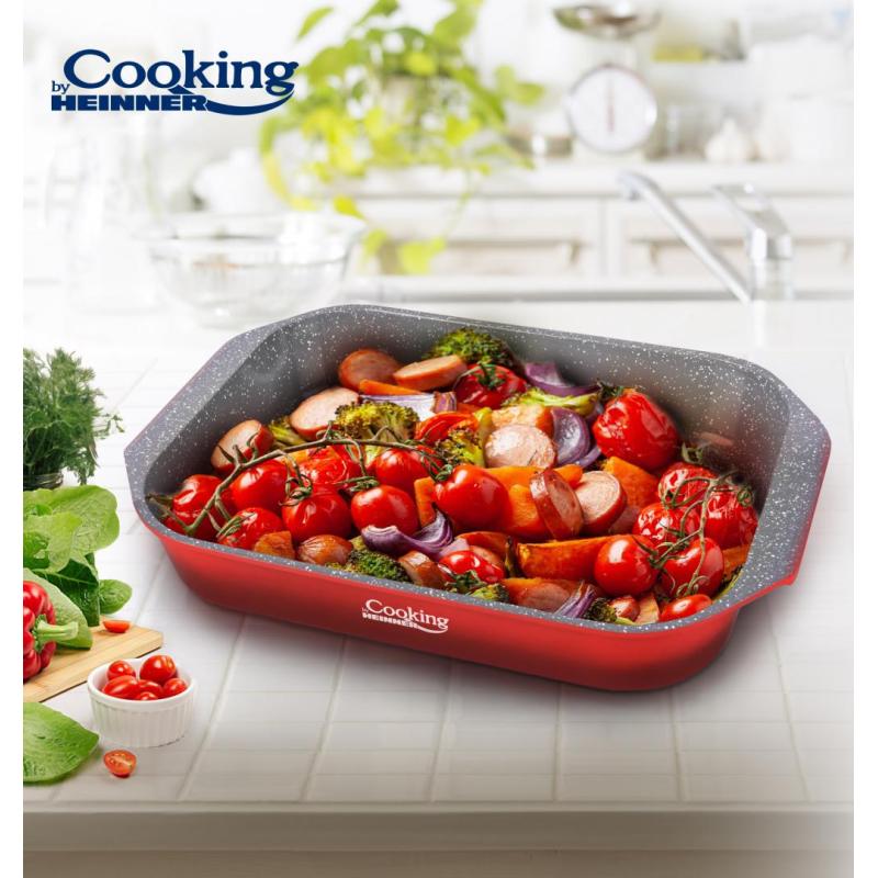 TAVA ALUMINIU CU ACOPERIRE CERAMICA 39.5x26 CM, RED LINE, COOKING BY HEINNER