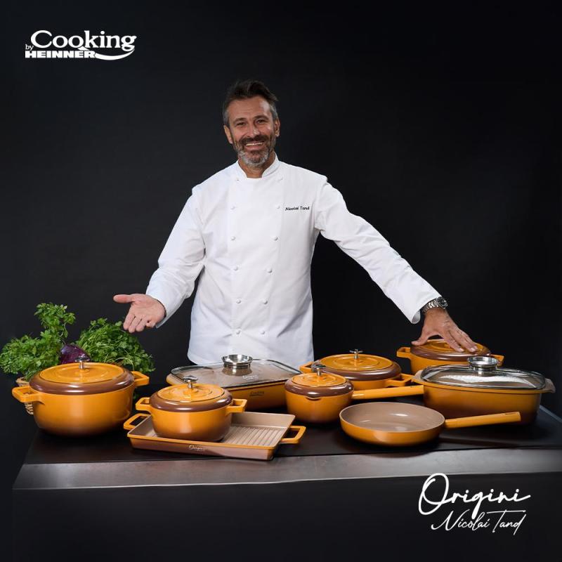 Linia de Vase din aluminiu turnat NICOLAI TAND a fost creata pentru ca dumneavoastra sa aveti, in sfarsit, un ajutor de nadejde in bucatarie, indiferent de ceea ce aveti de gand sa preparati. Suprafata interioara a produselor, acoperita cu ceramica antiaderenta gri, ofera o rezistenta crescuta la lipire, usureaza curatarea si faciliteaza gatitul fara grasimi, oferind optiuni sanatoase si gustoase. Vopseaua portocalie exterioara este rezistenta la temperaturi inalte. Performanta, durabila si functionala, aceasta linie este esentiala pentru orice bucatarie. Orice produs din aceasta linie (sau, de ce nu, toata linia), poate reprezenta un cadou potrivit pentru orice ocazie, in special ca un cadou de casa noua.