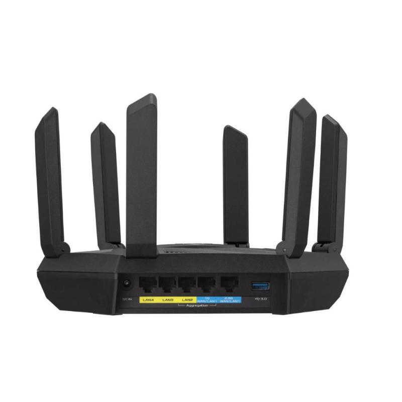 Router Wireless Asus RT-AXE7800, tri-band, WI-FI 6, , standarde reteaEEE 802.11a, IEEE 802.11b, IEEE 802.11g, WiFi 4 (802.11n) WiFi 5 (802.11ac), WiFi 6 (802.11ax), WiFi 6E (802.11ax), IPv4, IPv6 574+4804+2402 Mbps, 6 antene externe, Procesor: 1.7Ghz, 256